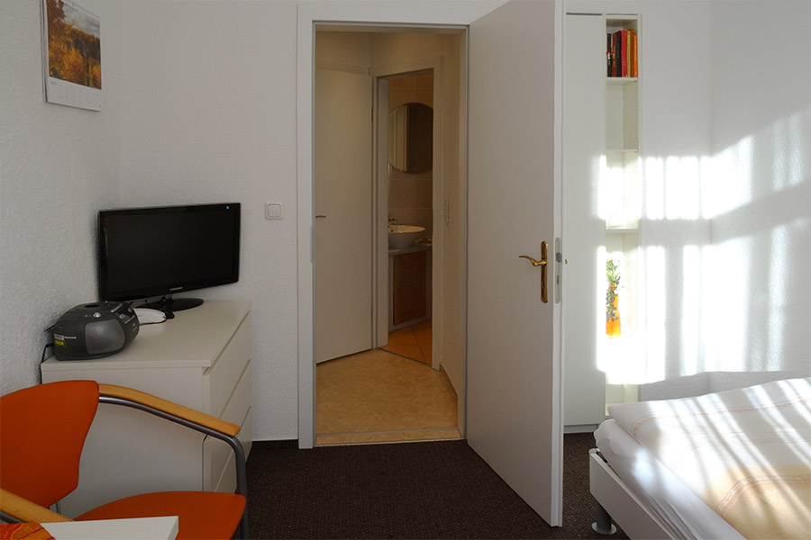Das Einzelzimmer 01 im Erdgeschoss ist wie folgt ausgestattet:
