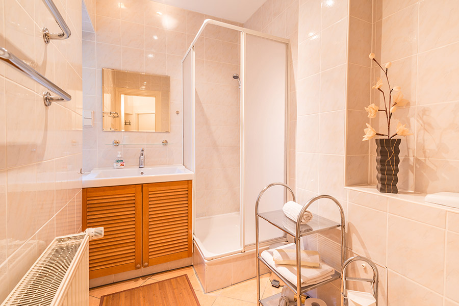 - Bad mit Dusche, Waschbecken, WC, Föhn