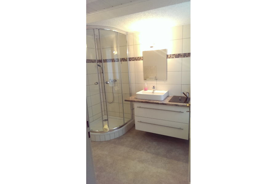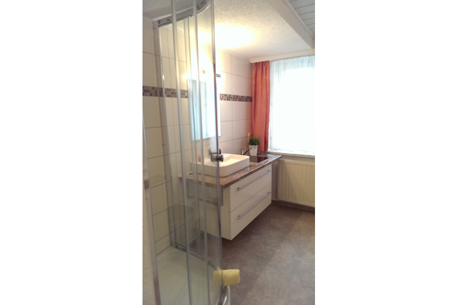 - Bad mit Dusche, Waschbecken, separates WC, Föhn